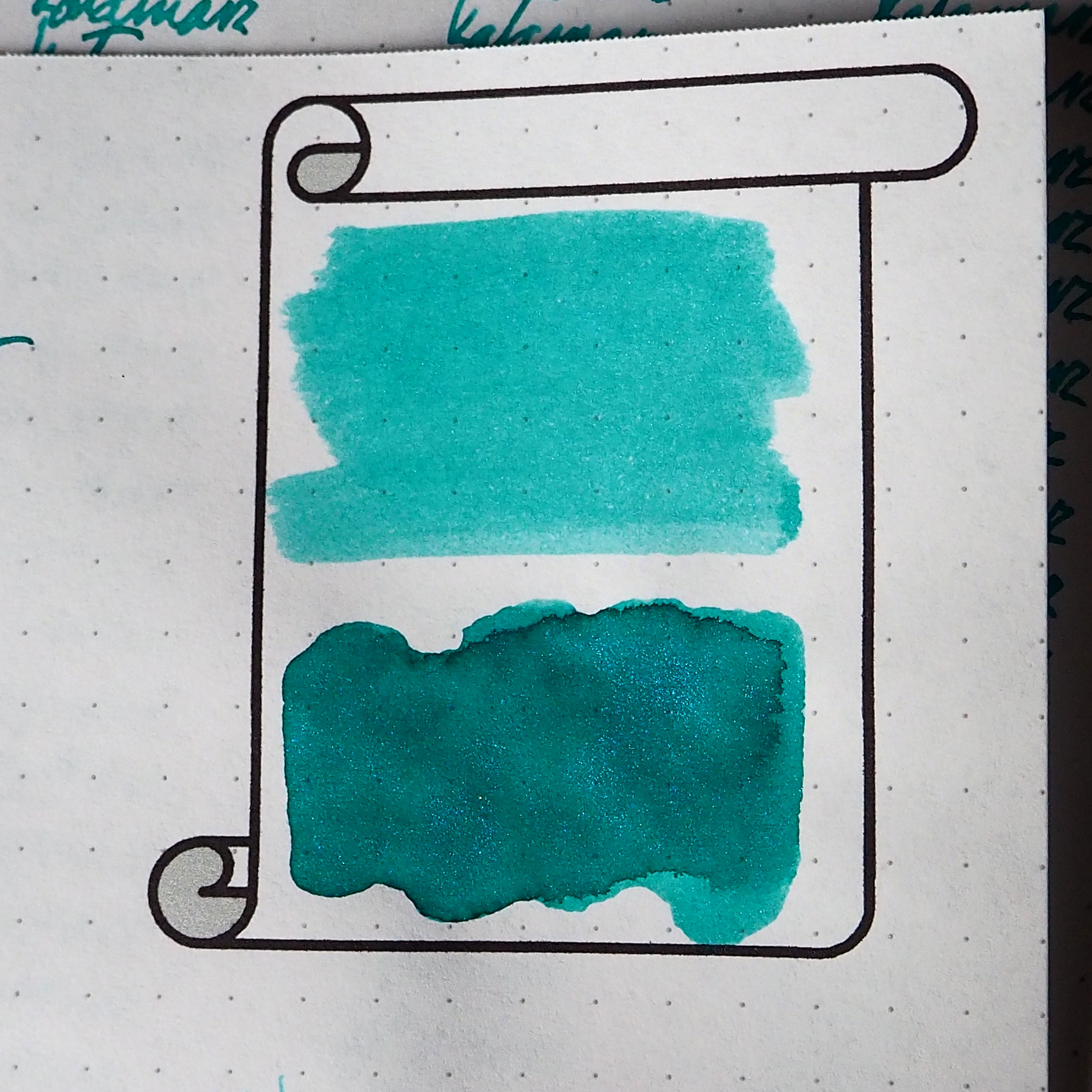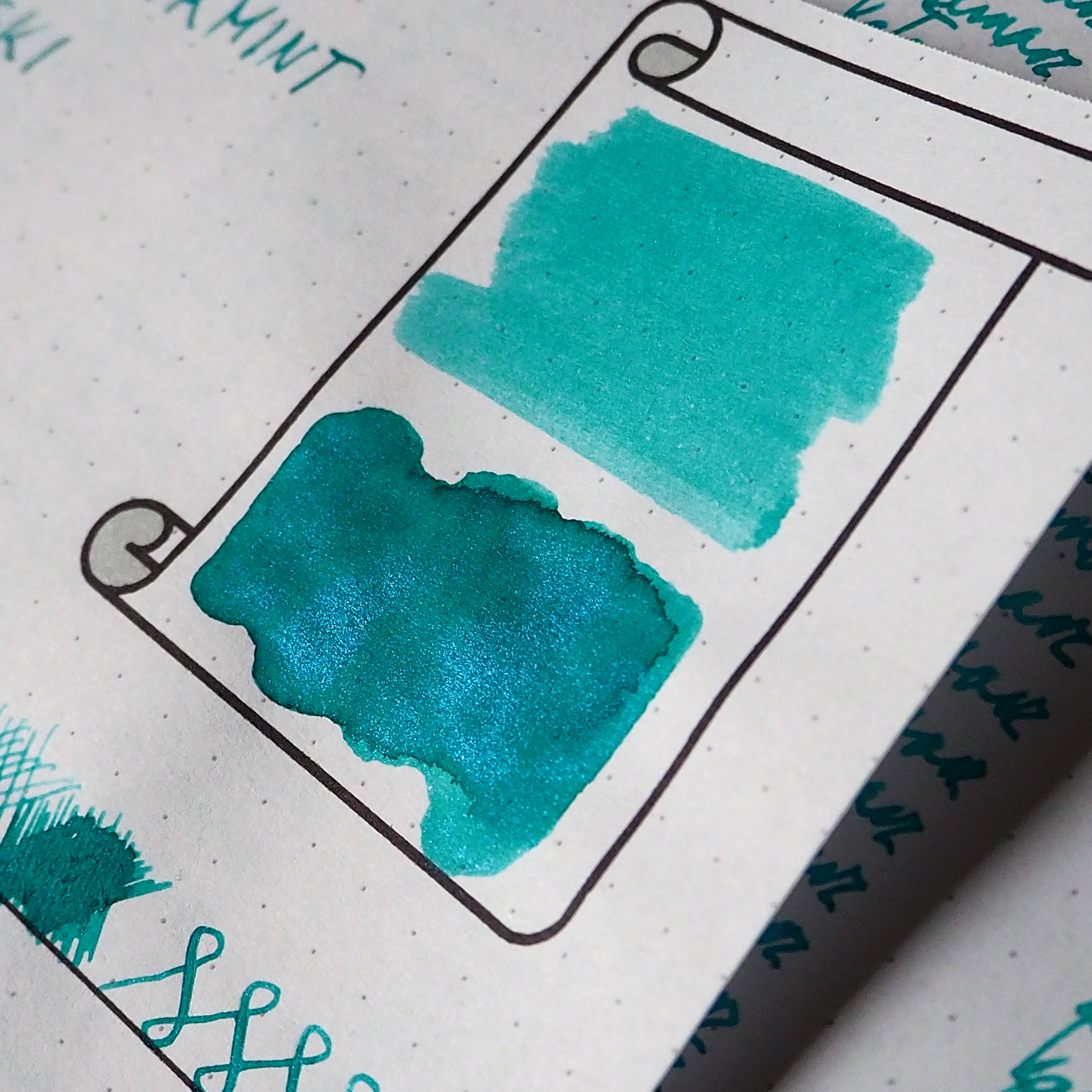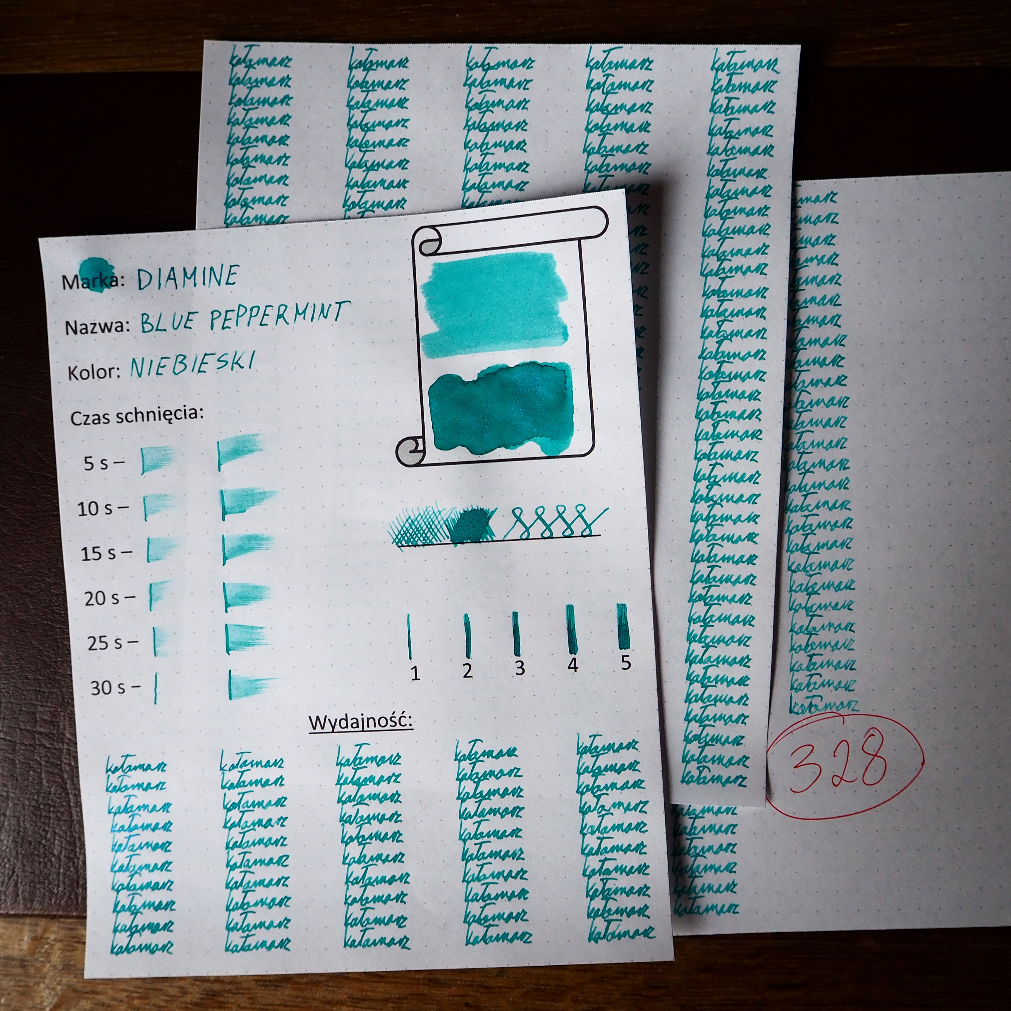 Atrament Blue Peppermint od Diamine wyróżnia się przede wszystkim buteleczką, która w mojej ocenie jest przepiękna. Jeśli chodzi o sam atrament, to spodziewałem się po nim lepszej wydajności. Jak na świąteczną edycję jest dla mnie trochę za mało "świąteczny". ;) Kolor jednak przypadł mi do gustu. Jest bardziej turkusowy niż większość turkusowych atramentów i to mi się podoba. Podsumowując - nie żałuję wydanych pieniędzy. :)