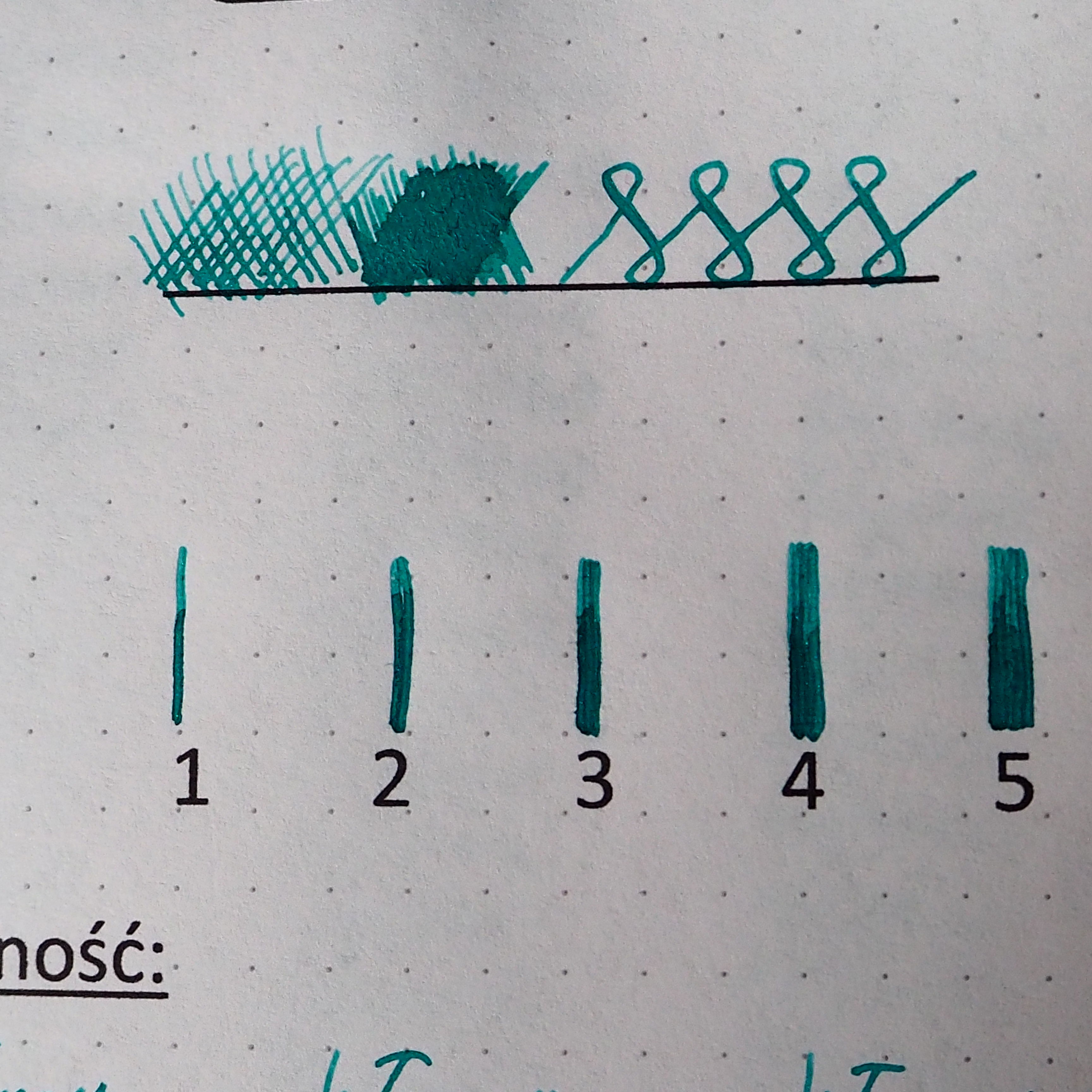 Przepływ atramentu oceniam jako dobry. Atrament zawarty jedynie w sekcji pióra wystarczył na napisanie 328 "kałamarzy". Za to przyznaję mu 0,5 punktu.