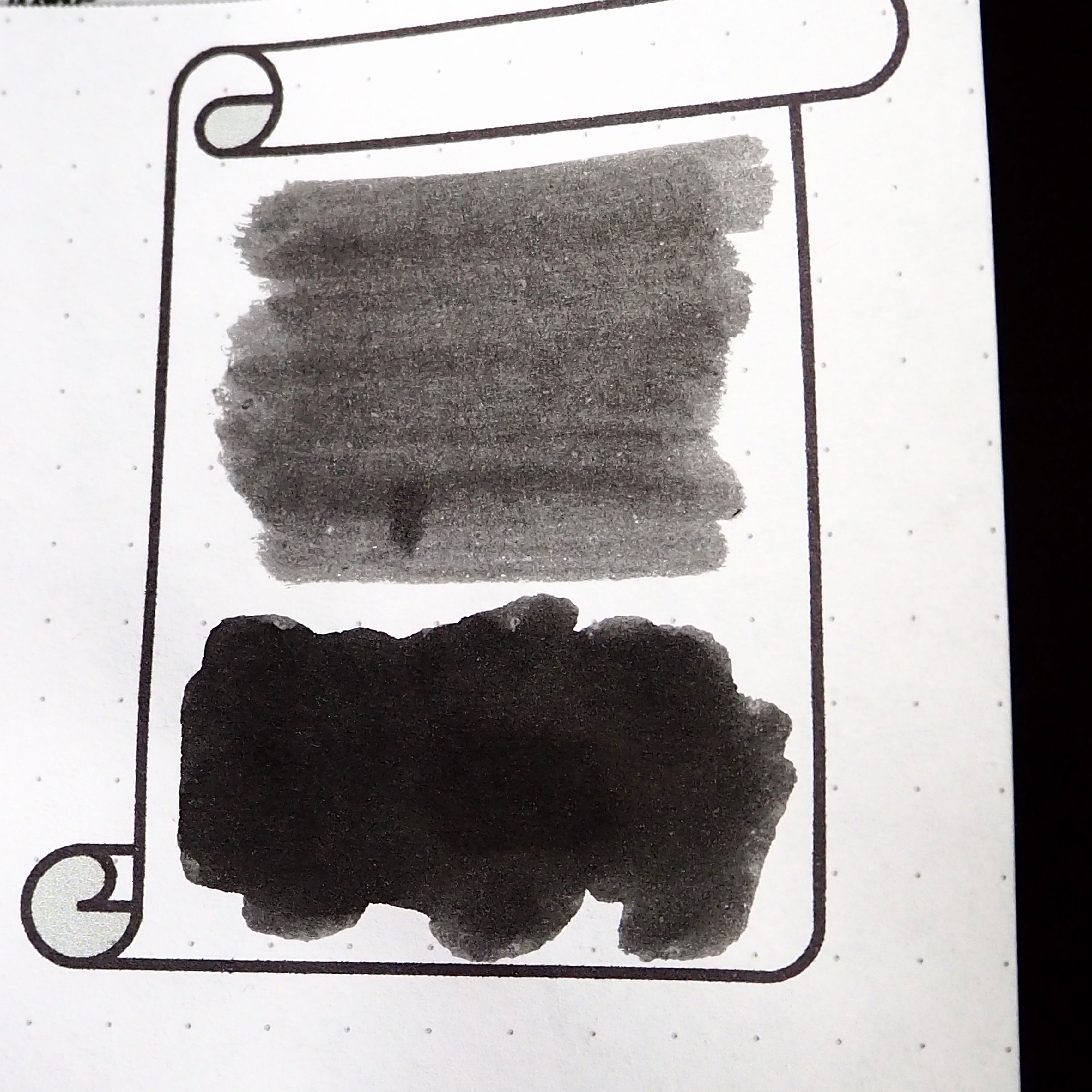 Faber-Castell Black jest faktycznie czarny. Posiada tendencję do cieniowania, kiedy wychodzi z niego kolor szary ale zdecydowanie więcej jest w nim głębokiej czerni.