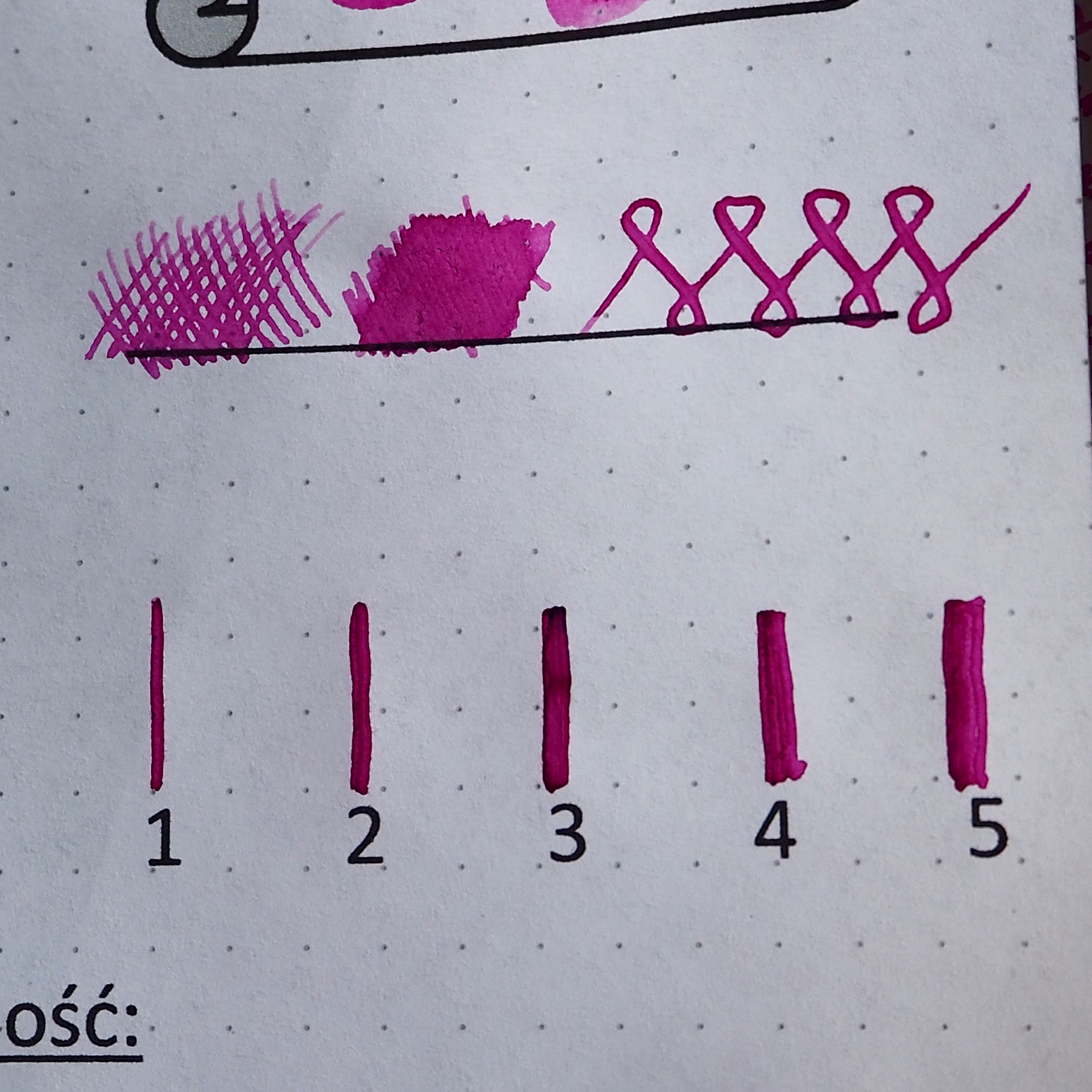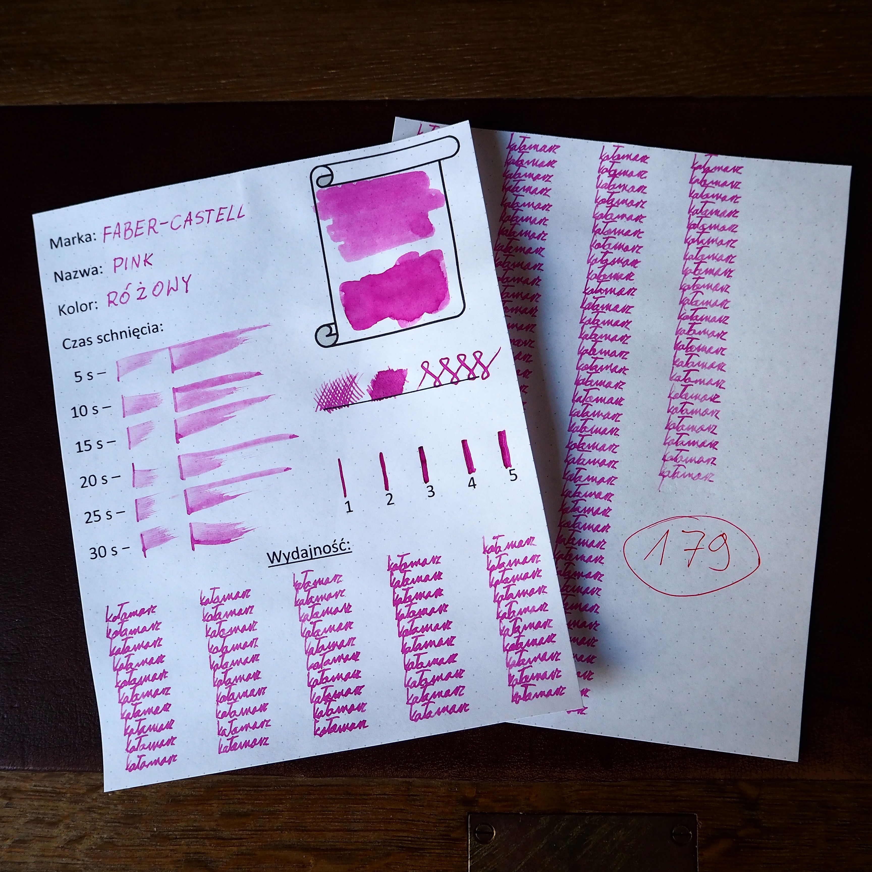Przepływ atramentu oceniam niestety słabo. Atrament zawarty jedynie w sekcji pióra wystarczył na napisanie zaledwie 179 "kałamarzy". Przyznaję za to 0 punktów.