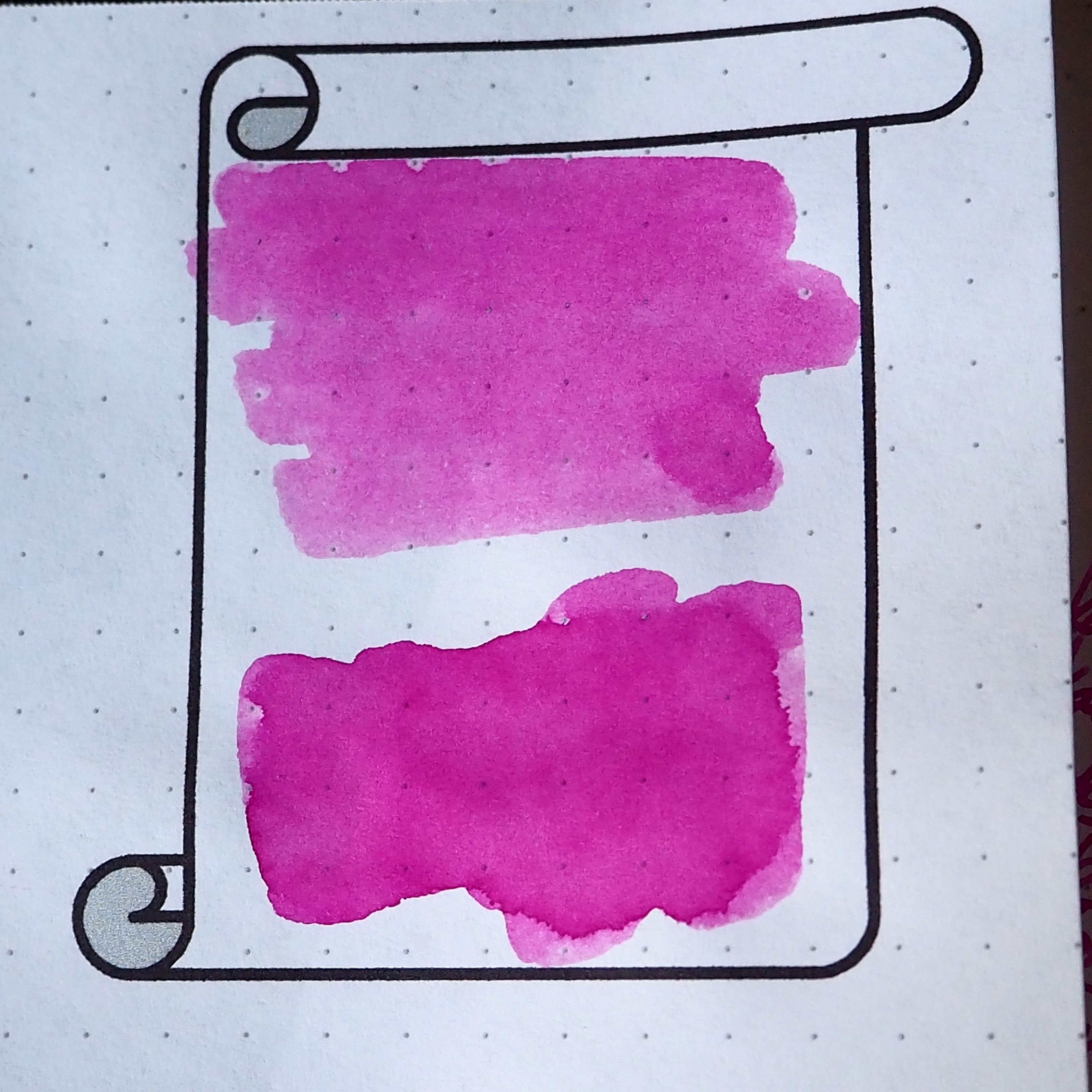 Faber-Castell Pink jest niezaprzeczalnie atramentem słabym. Wyraźnie odstaje od reszty kolorów tej serii. Posiada również, jak dotąd, najgorszy wynik testu "kałamarza". :( Szkoda, bo marka Faber-Castell zrobiła na mnie naprawdę dobre wrażenie. Czy jestem w stanie napisać coś dobrego o tym atramencie? Naturalnie. Jeżeli się Wam rozleje, nie odczujecie większej straty. Ja planuję przeznaczyć mój na eksperymenty z mieszaniem kolorów. ;)