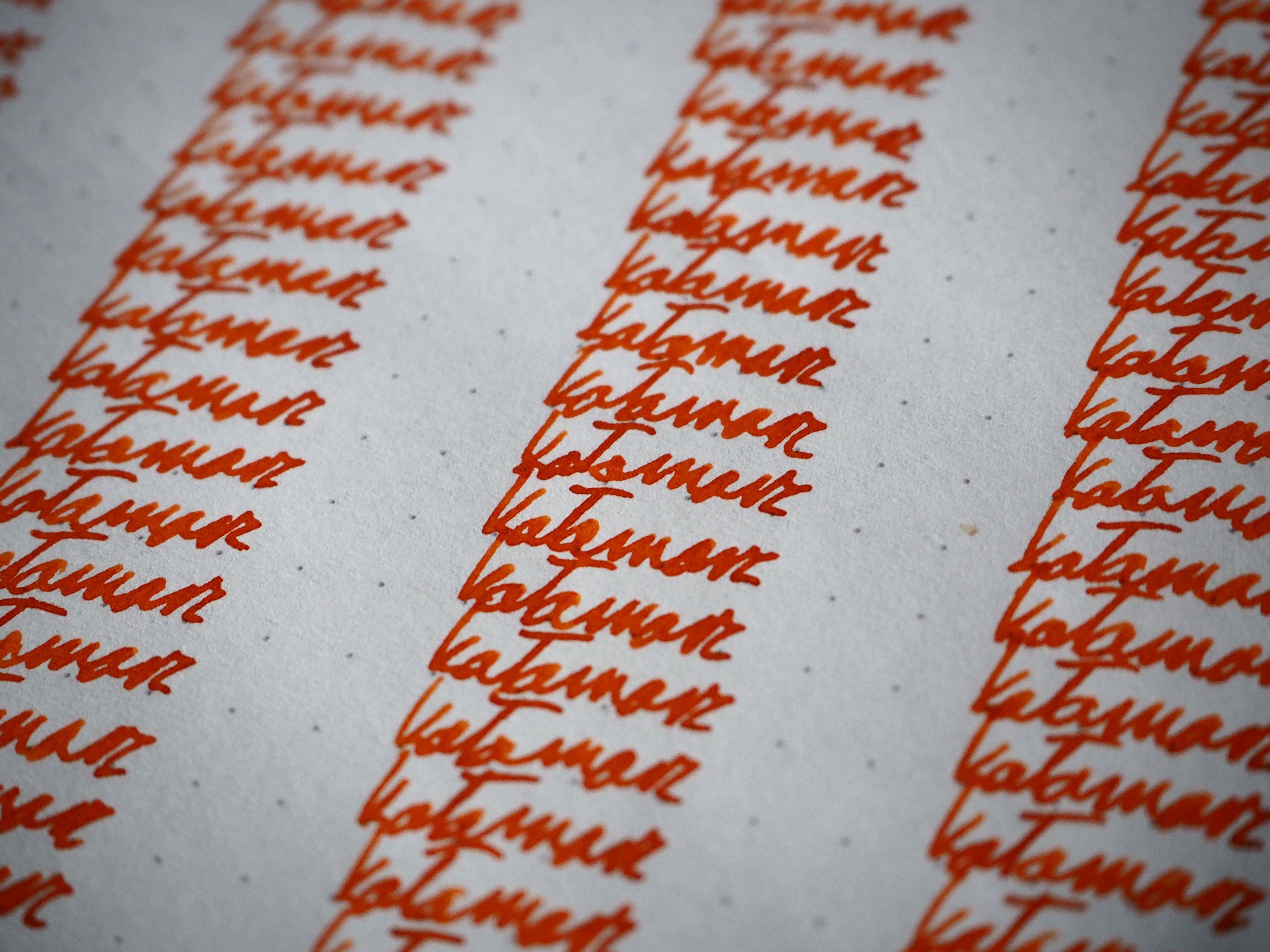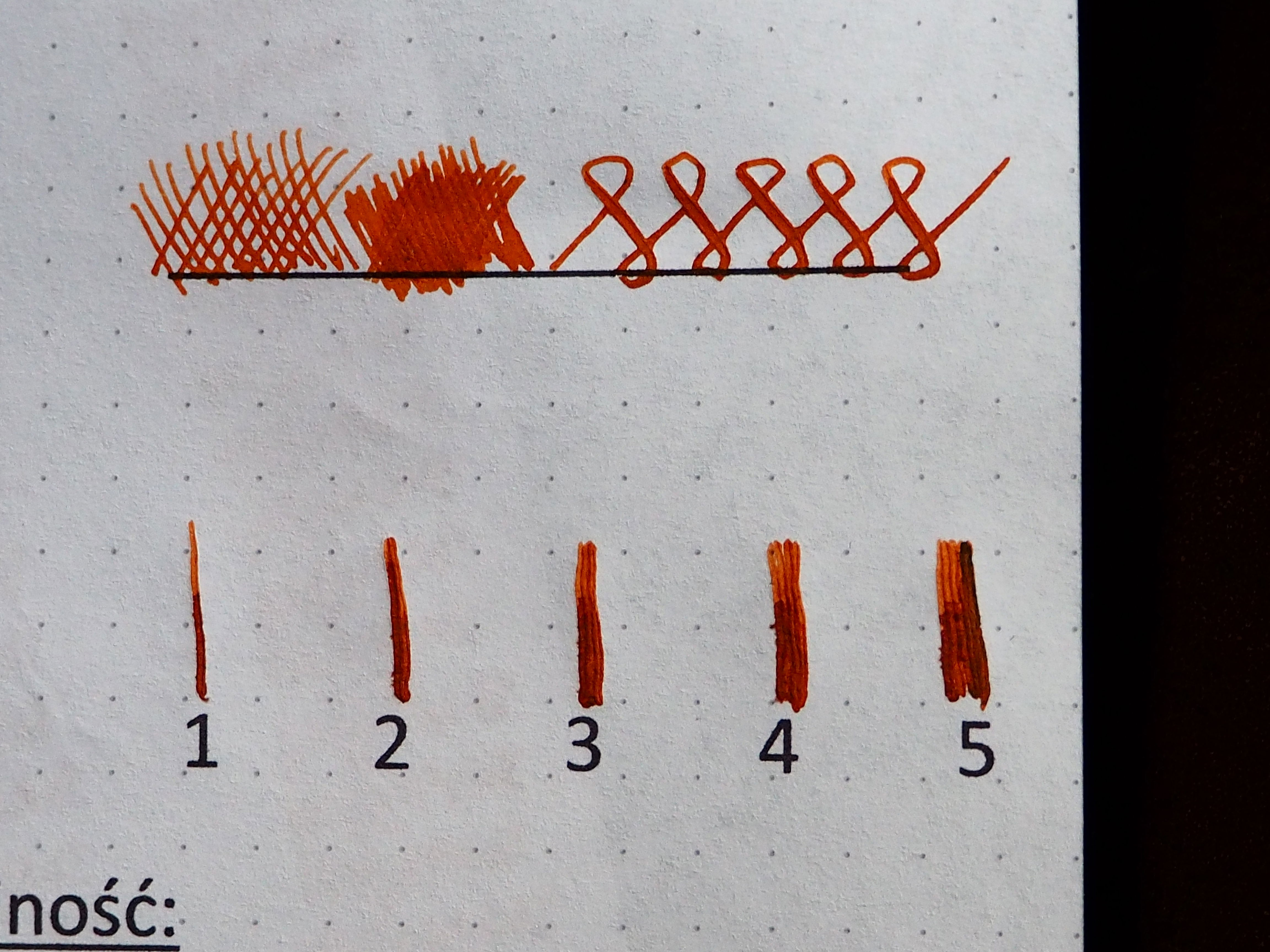 Czas przetestować atrament w boju. Do testu, jak zawsze, wykorzystuję papier Rhodia (80 g/m2) i pióro Jinhao x450.