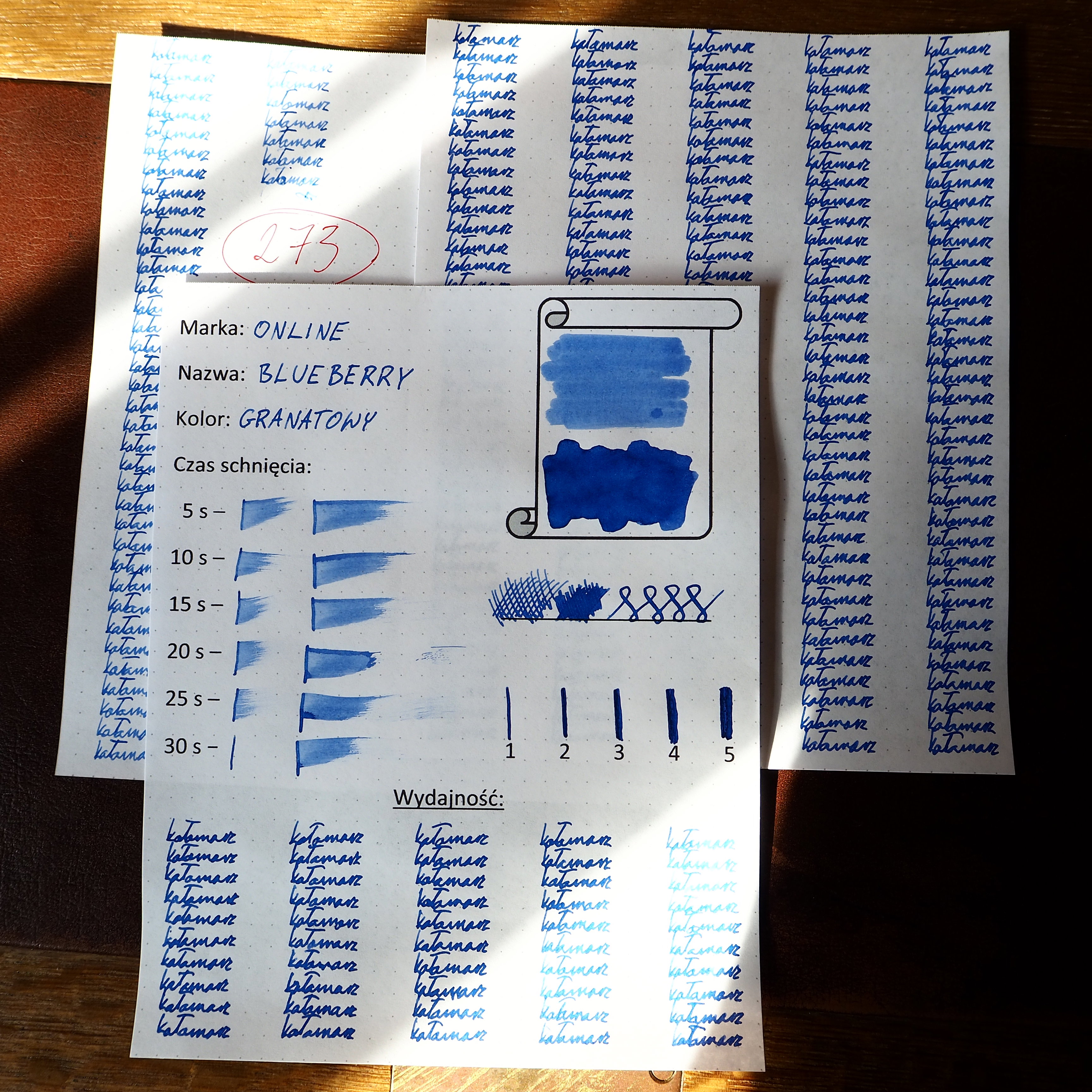 Atrament Online Blueberry jest ciekawą pozycją, choć dla mnie nieco zbyt drogą. Mała pojemność buteleczki posiada swoje plusy, pod warunkiem że atrament nadrabia swoją wydajnością. W tym wypadku tak nie jest. Jeśli ktoś nie pisze często a lubi zapachowy atrament i podoba mu się ten kolor, to polecam. Sam jednak jestem zawiedziony tą pozycją. Dawno nie miałem w rękach atramentu, którego właściwości byłyby tak słabe.