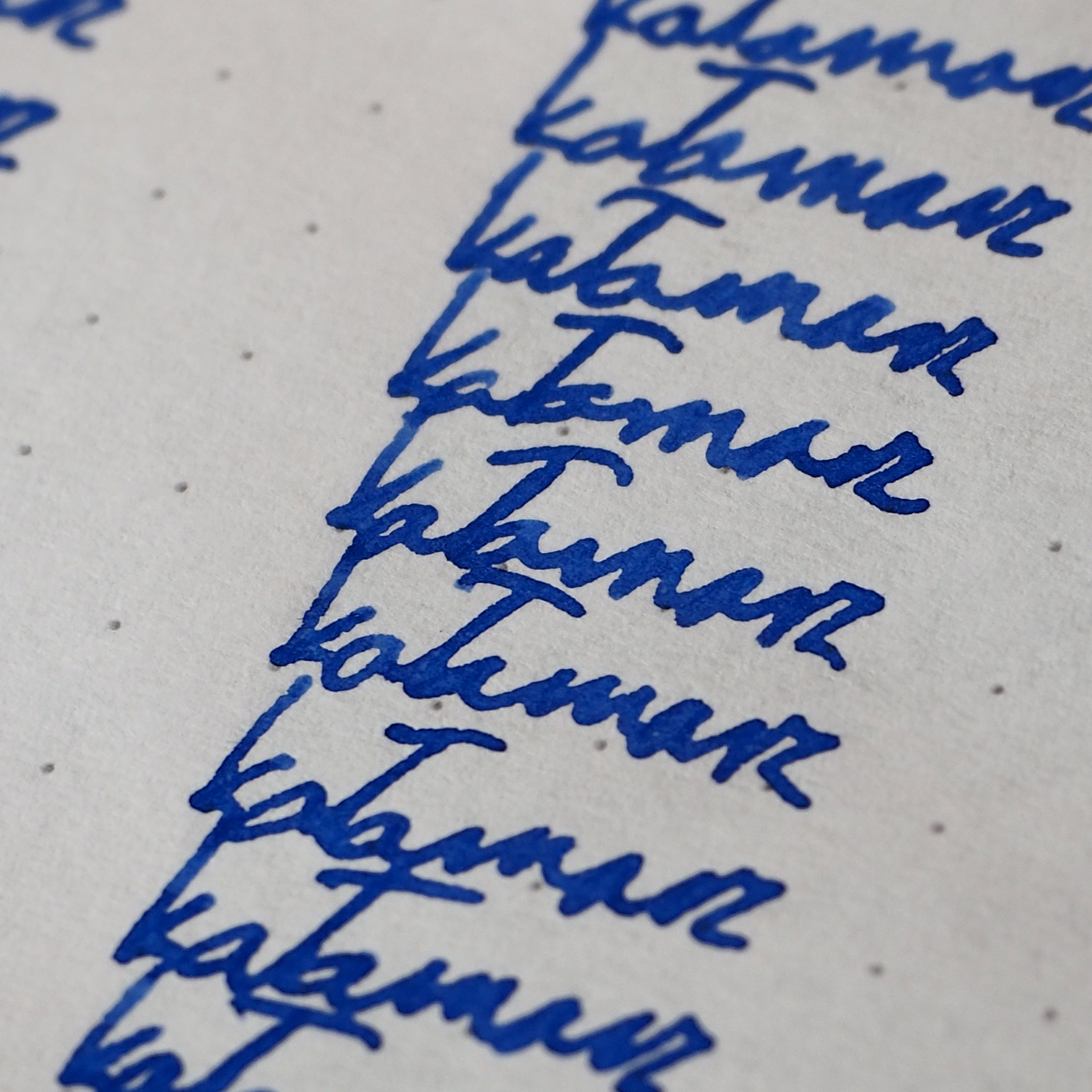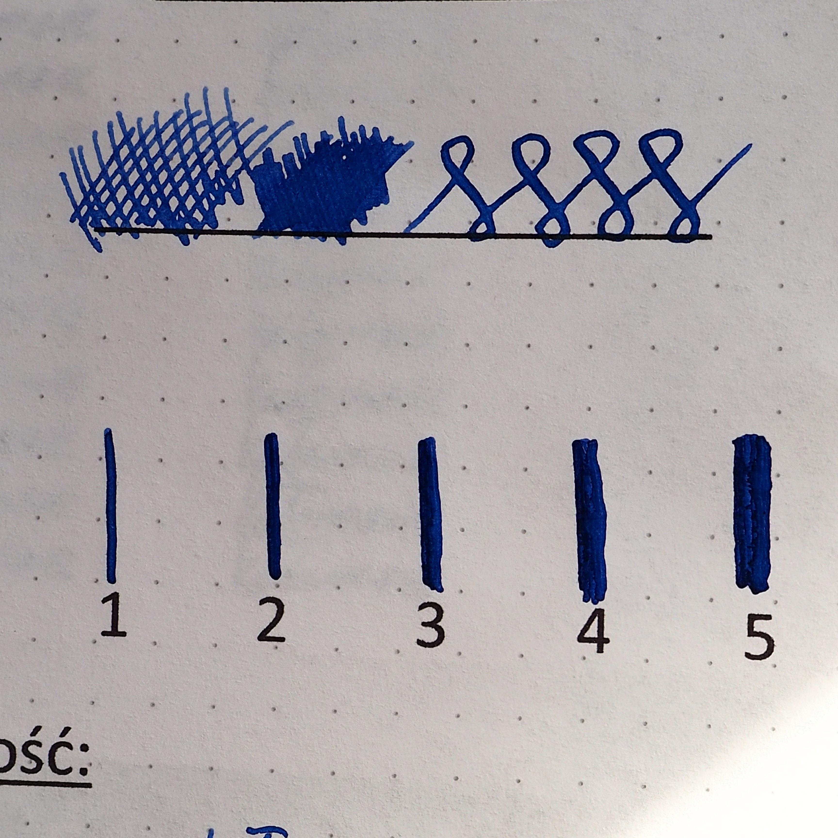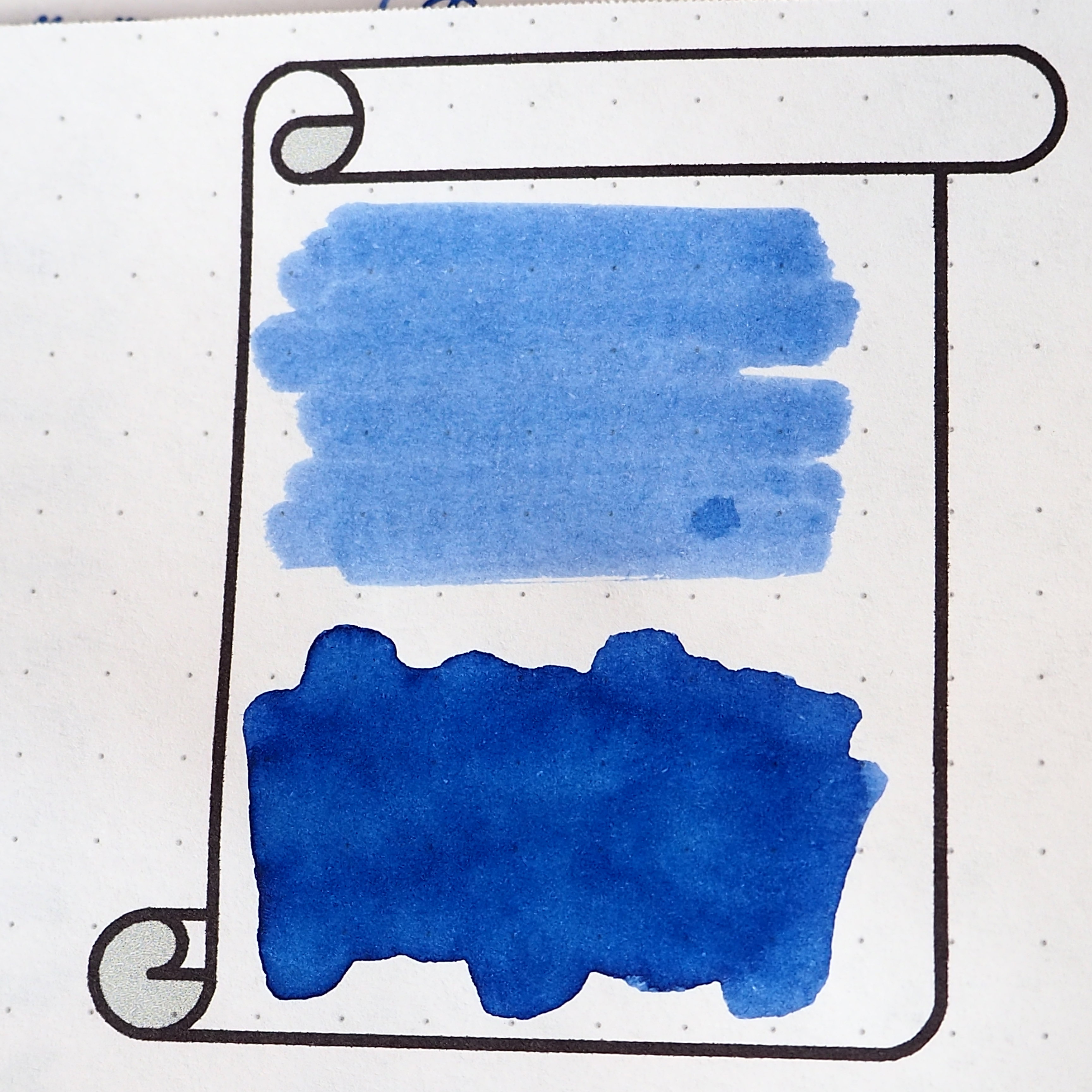 Czy kolor atramentu faktycznie jest jagodowy? Polemizowałbym. Jest to nasycony jasny granatowy, który w swojej najjaśniejszej odsłonie jest po prostu niebieski. Spodziewałem się wyraźnej nuty fioletu, jednak moje nadzieje były płonne. Atrament posiada lekką tendencję do cieniowania i jego odcień jest bardzo podobny do niebieskiego atramentu Waldmanna.