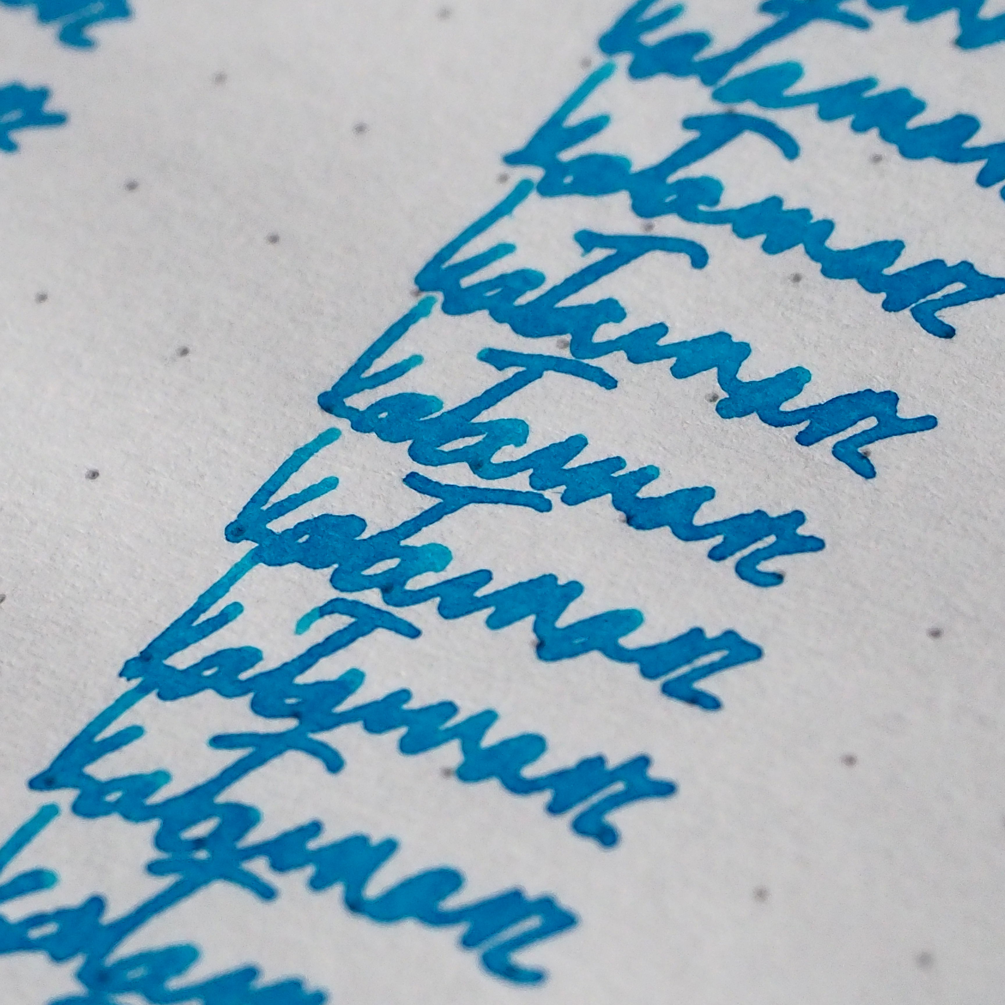 Czas przetestować atrament w jego żywiole. Do testu, jak zawsze, wykorzystuję papier Rhodia (80 g/m2) i pióro Jinhao x450.