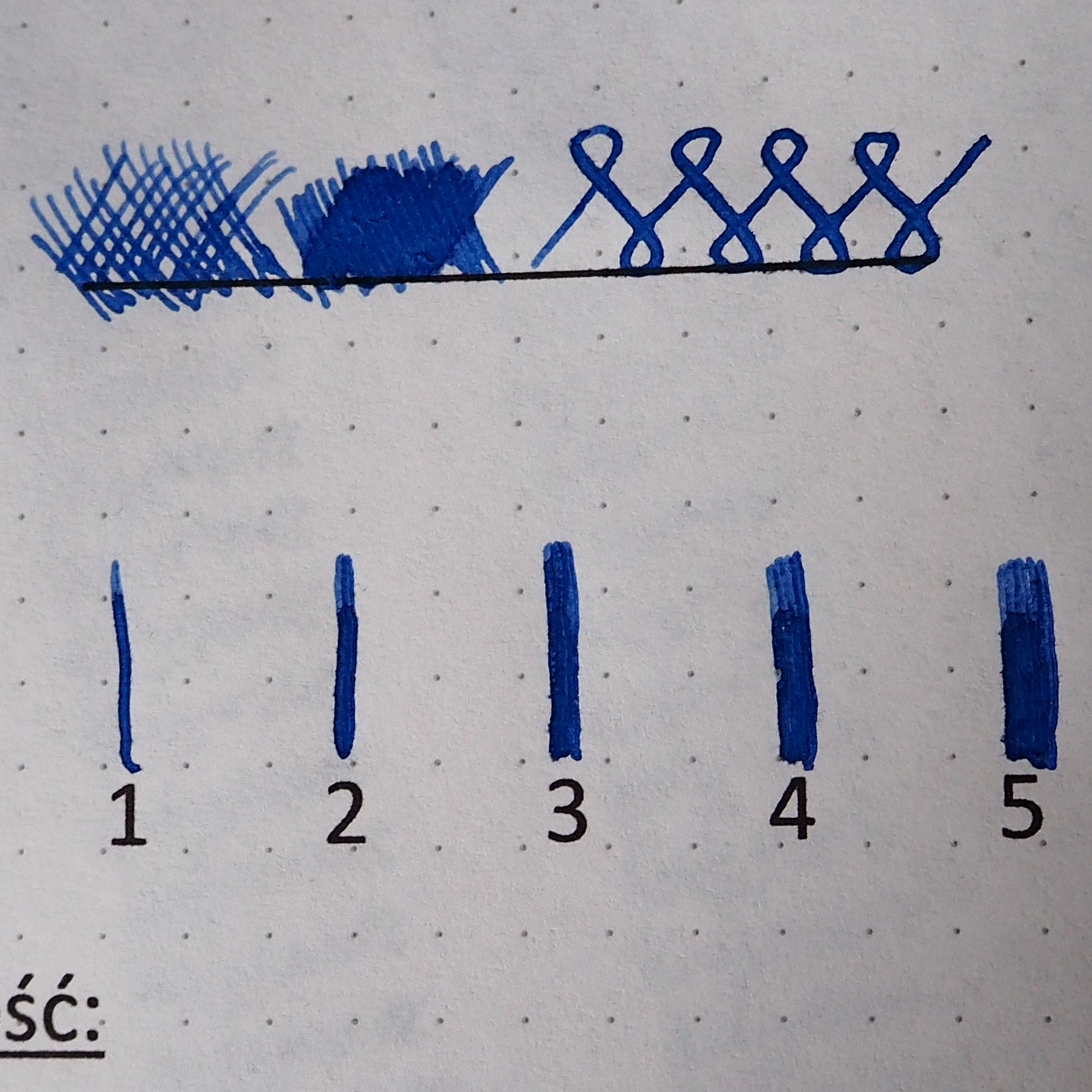 Czas schnięcia atramentu to ponad 30 sekund dla cienkiej i grubej kreski. Przyznaję 0 punktów.