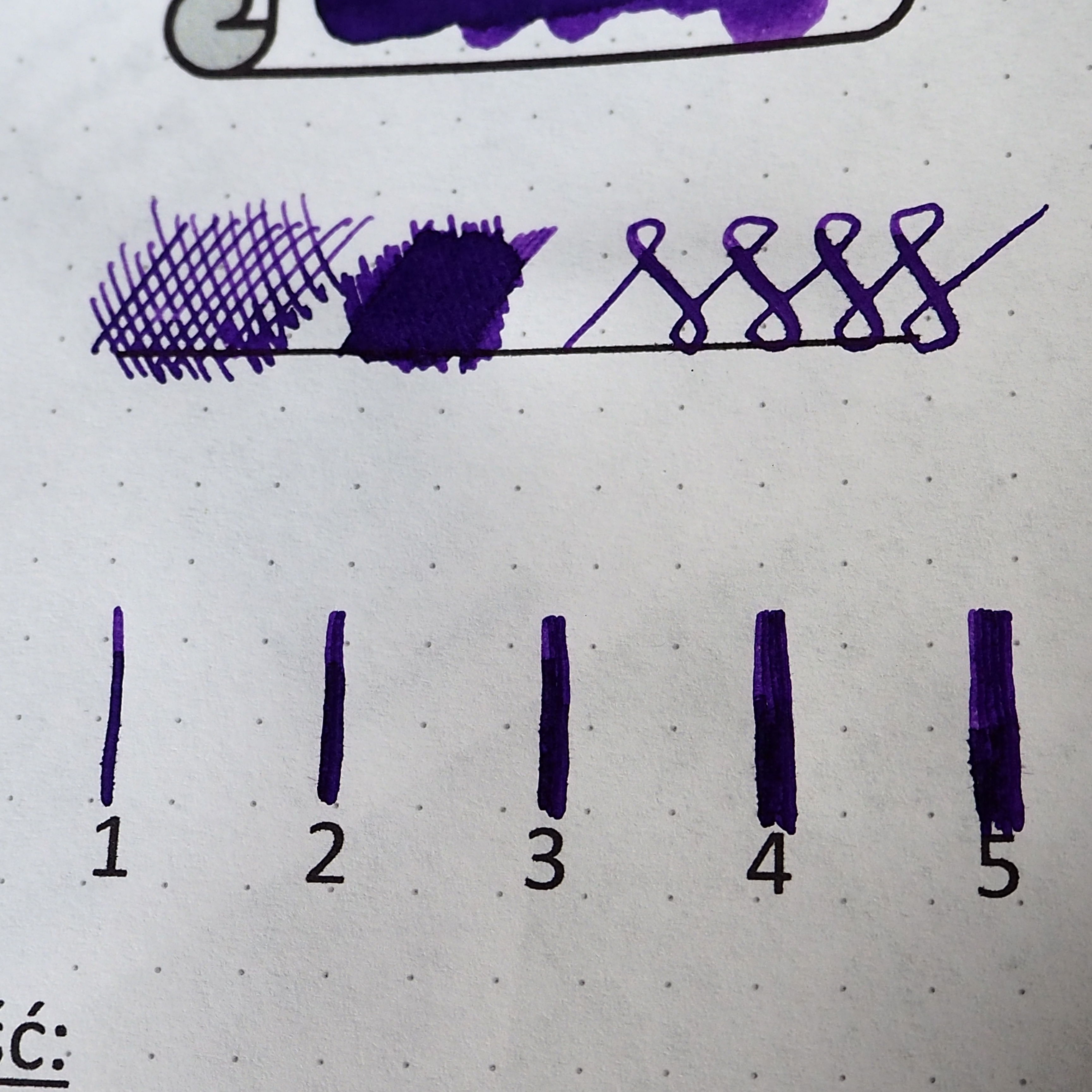 Czas schnięcia atramentu to 25 sekund dla cienkiej kreski, ale już ponad 30 sekund dla grubej. Daję 0,25 punktu.